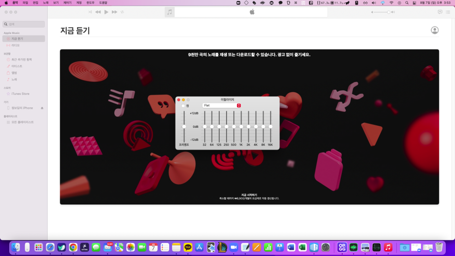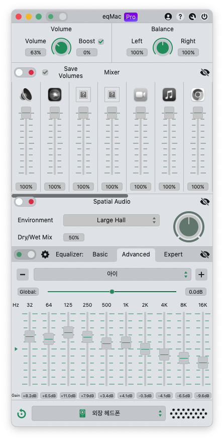 여기서 조절한 eq는 맥의 모든 소리에 관여합니다